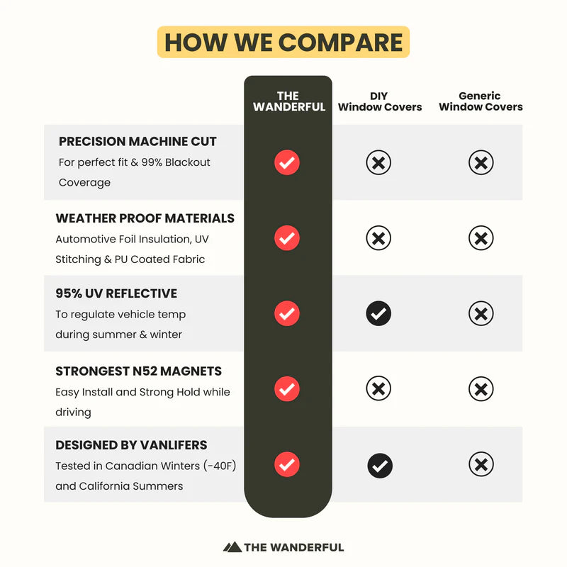 Precision machine-cut panels and powerful rare earth magnets ensure a tight seal, delivering full blackout coverage so you can rest comfortably and discreetly wherever you park.